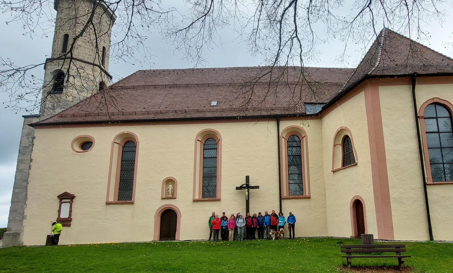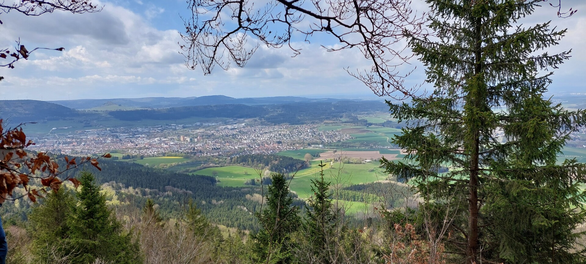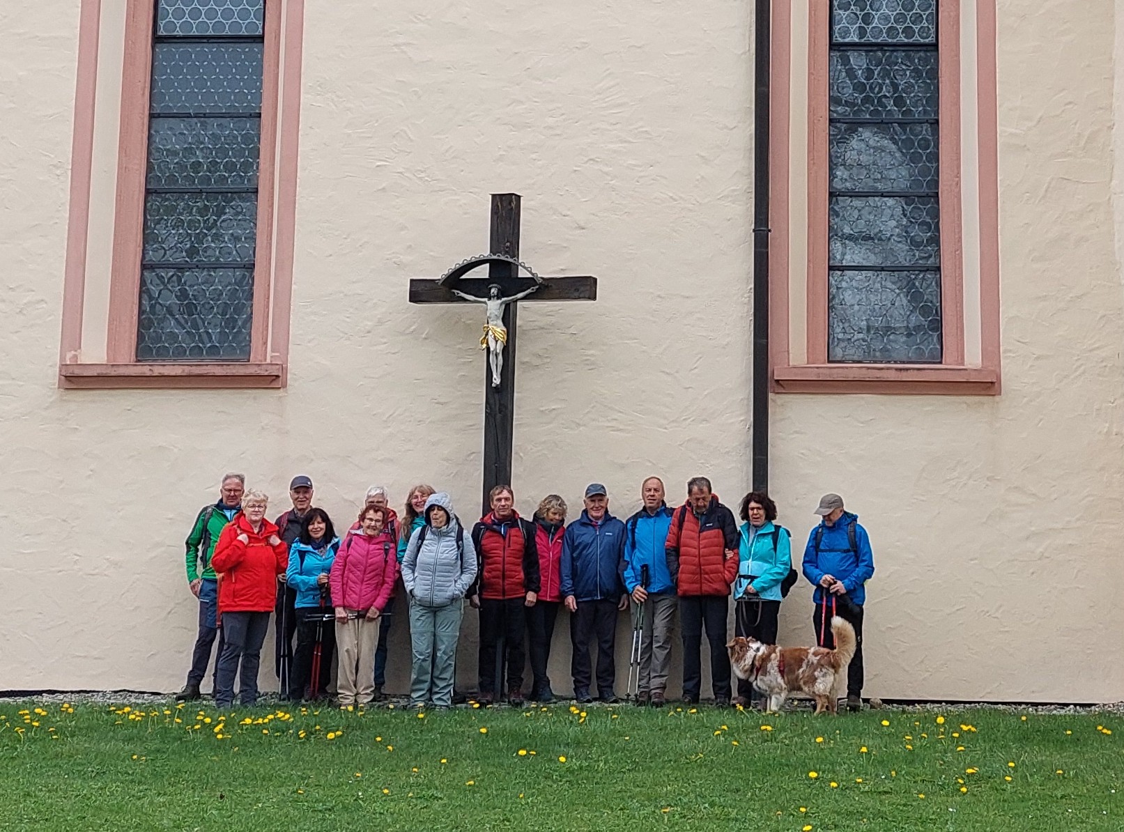 Der Schwarzwaldverein Lauterbach hatte am Sonntag, den 19. 4. 2026 zur Wanderung auf dem Klippenecksteig eingeladen. Trotz unsicherer Wetterlage hatten sich den den Abfahrtspunkten in Lauterbach, Schramberg und auf dem Sulgen 17 Wanderfreude eingefunden, um über Rottweil nach Denkingen zu fahren. Bei Schützenhaus startete die Tour gleich mit einem steilen Aufstieg, vorbei an der Nothelferkapelle zum Klippeneck. Dort oben an der Traufkante wurden die Wanderer von stürmischen Böen begrüßt. Am Trauf entlang führte der Weg relativ eben zur Josefskapelle, wo die Teilnehmer in den Strahlen der wärmenden Sonne das Panorama über Spaichingen genießen konnten. Auf dem weiteren Weg Richtung Dreifaltigkeitsberg machte der April seinem Namen Ehre und veranlasste die Wanderer, ihren Regenschutz auszupacken. Bei der Rast am Dreifaltigkeitsberg hatte die Himmel jedoch seine Schleusen jedoch schon wieder geschlossen. Gestärkt machte sich die Gruppe an den Abstieg auf dem Kreuzweg. Vorbei am Gasthaus zur bleiche gelangten die Wanderer auf dem Studentenweg zurück zur Wassertretanlage ober halb Denkingen und erreichten nach etwa 3,5 Stunden und 9,5 Wanderkilometern mit 350 Höhenmetern Aud-i und Abstiegen das Schützenhaus. Nachdem sich alle mit Speis und Trank gestärkt hatten, danke Kurt Gießer dem Wanderführer Hans Huber für die abwechslungsreiche Wanderung, ehe sich die Teilnehmer wieder auf die Heimreise machten.