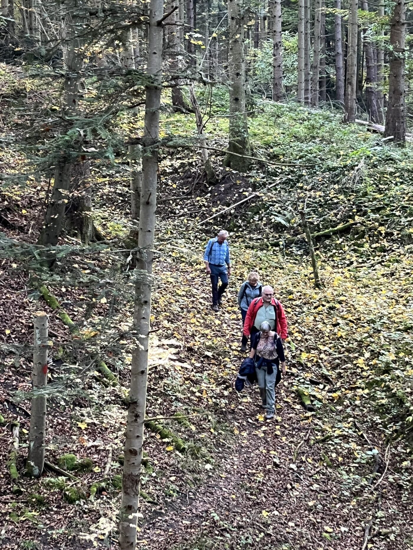 Der Schwarzwaldverein Lauterbach hatte am 12. Oktober zu einer Wanderung ins Schlichemtal eingeladen. Gegen 10.15 Uhr konnte Wanderführerin Brigitte Straub 11 Mitwanderer in Sulgen an der Kreissporthalle begrüßen. Etwas umständlich, Dank der Umleitung bei Zimmern, gelangte die Gruppe mit 3 Pkw nach Rotenzimmern. Hier wurden die Wanderschuhe geschnürt und durch die Waldenbachschlucht aufwärts gewandert. Pünktlich zur Mittagszeit erreichten die Wanderer einen Rastplatz, gelegen an der gegenüberliegenden Seite der Waldenbachschlucht, ehe die Tour wieder bis an den Ortsrand von Rotenzimmern führte. Entlang des Schlichemtals erreichten die Wandersleute Täbingen, wo ein Kaffeeautomat neben dem Taubenhaus zur Rast lockte. Bei strahlend blauem Himmel führte der Weg über das Hochplateau in Richtung Gößlingen und dann leicht abwärts, vorbei an der Ruine Rotenzimmern zurück zum Ausgangspunkt. Gegen 16:30 wurde die Heimfahrt, diesmal über Epfendorf angetreten. Bei der Abschlußeinkehr im Wehle in Dunningen konnte Wanderführerin Brigitte Straub den Dank der Mitwanderer schöne 16 Kilometer lange Wanderung in relativ unbekanntem Gebiet entgegennehmen.