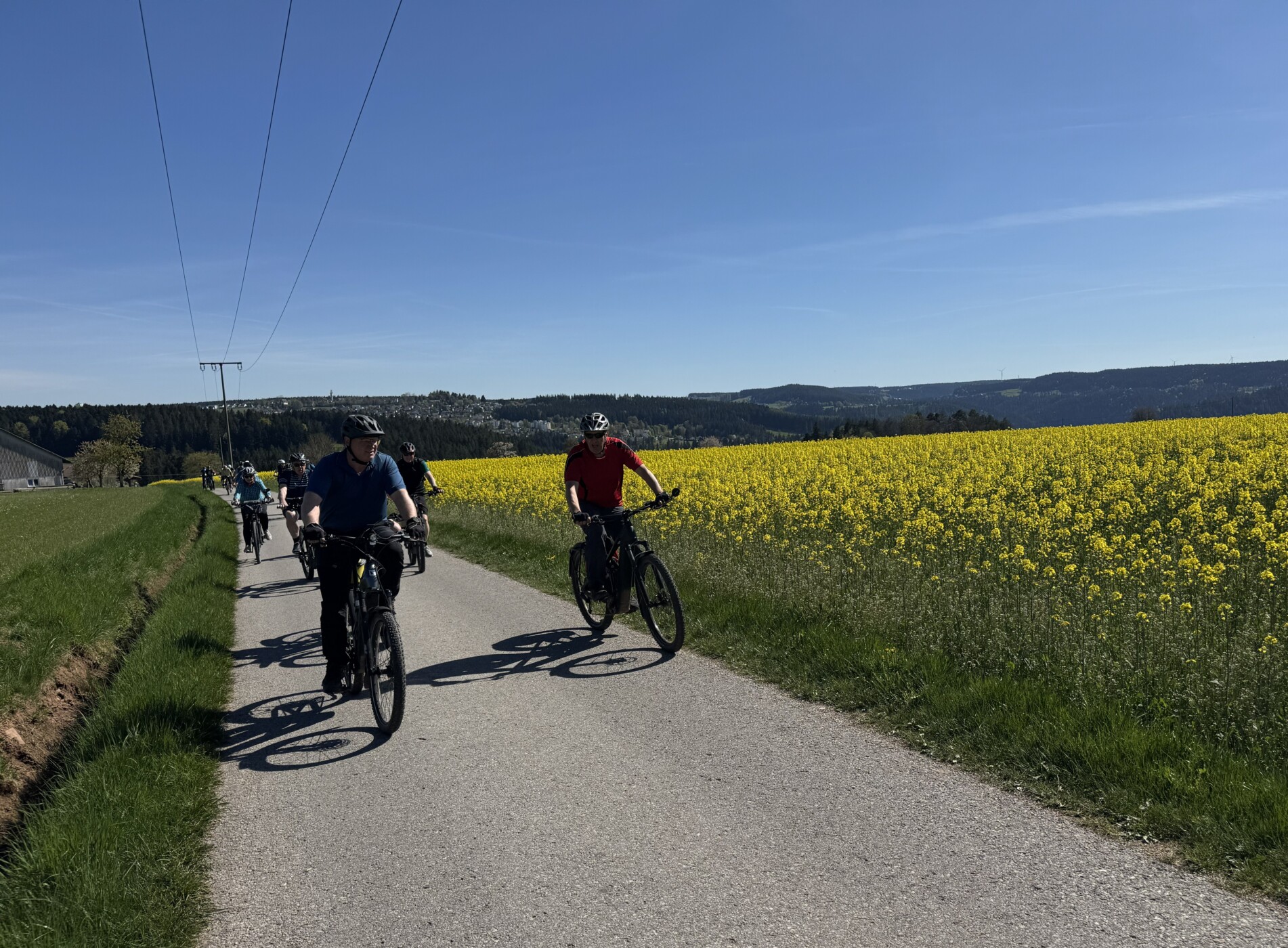 Bei strahlendem Sonnenschein und 19 Grad sind am Freitag, den 24.April 2026  28 E-Bike-Fahrerinnen und -Fahrer der Einladung des Schwarzwaldvereins Lauterbach gefolgt. Gemeinsam mit den Tourleitern Manfred Haas und Mark Finnern erkundeten sie auf der Verweilbänkle-Tour die Strecke von Lauterbach rund um Schramberg.