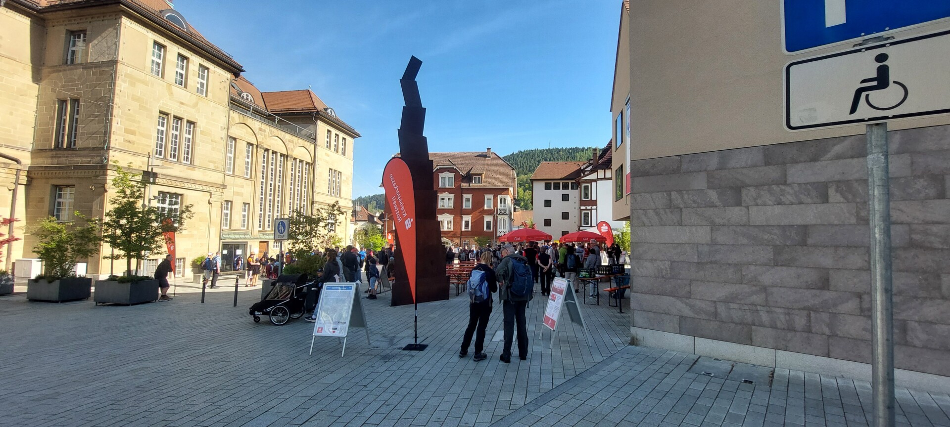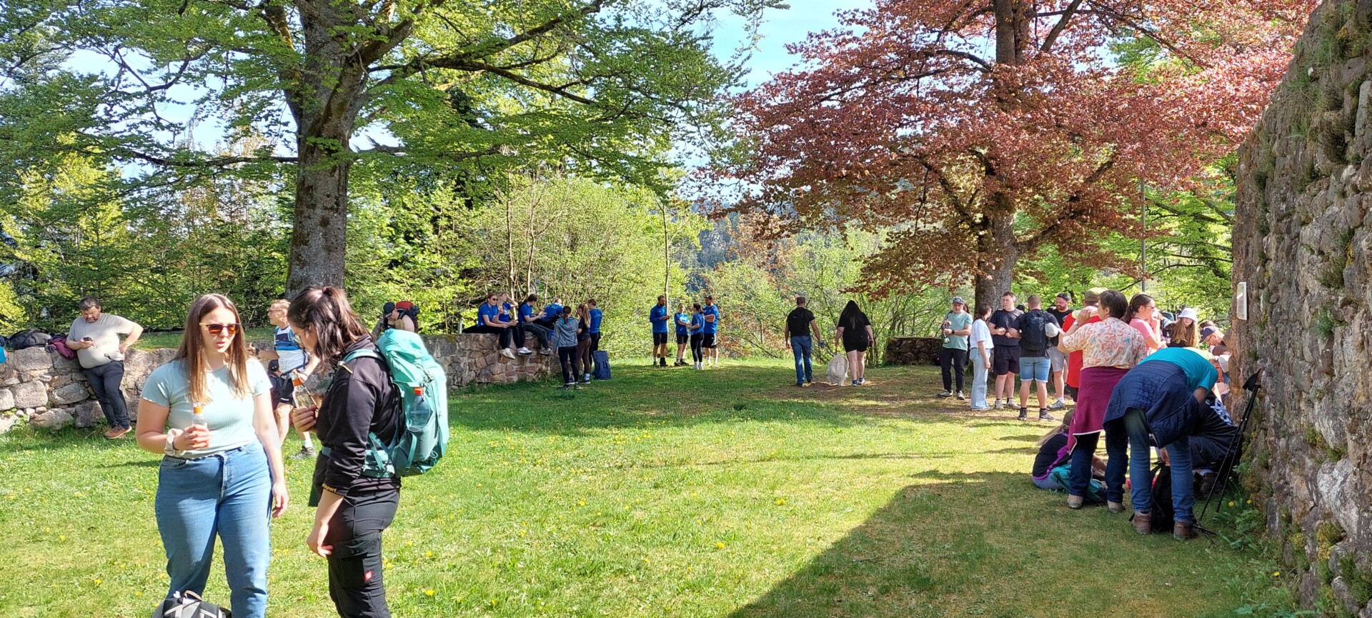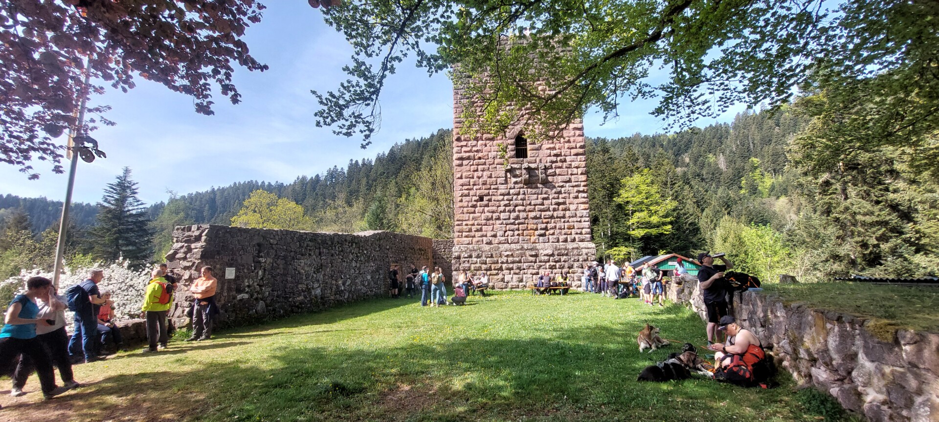 Am 26.4.26 trafen sich zwischen 9 und 10 Uhr etwa 800 Wanderer zu den angebotenen 3 Spendenwanderungen der Kreissparkasse Rottweil auf dem hinteren Rathausplatz in Schramberg. 6 Wanderfreunde des Lauterbacher Schwarzwaldvereins wandert auf der großen Tour um die nördliche Hälfte der Talstadt der Weg führte durch die Marktstraße, die Steige hoch, zunächst über den Ostweg, dann der gelben Raute folgend über den Tierstein zur Handelshofbrücke und auf der anderen Seite wieder hoch zur Burg Schilteck. Hier bot die Höfle-Vereinigung Gelegenheit zur Besteigung des Schilteck-Turms und die Möglichkeit, sich vor dem weiteren Aufstieg zur Hohenschramberg noch etwas auszuruhen und zu erfrischen. Zwischen 10 und 12 Uhr konnten etwa 400 Wanderfreunde den Ausblick von der Schilteck genießen, ehe die 2. Wegetappe über den Schloßbergweg zur Burgruine Hohenschramberg in Angriff genommen wurde. Der Abstieg erfolgte über das Felsenmeer vorbei am Aussichtshäusle zur St. Maria-Kirche und zum zurück zum Ausgangspunkt bei der Kreissparkasse.