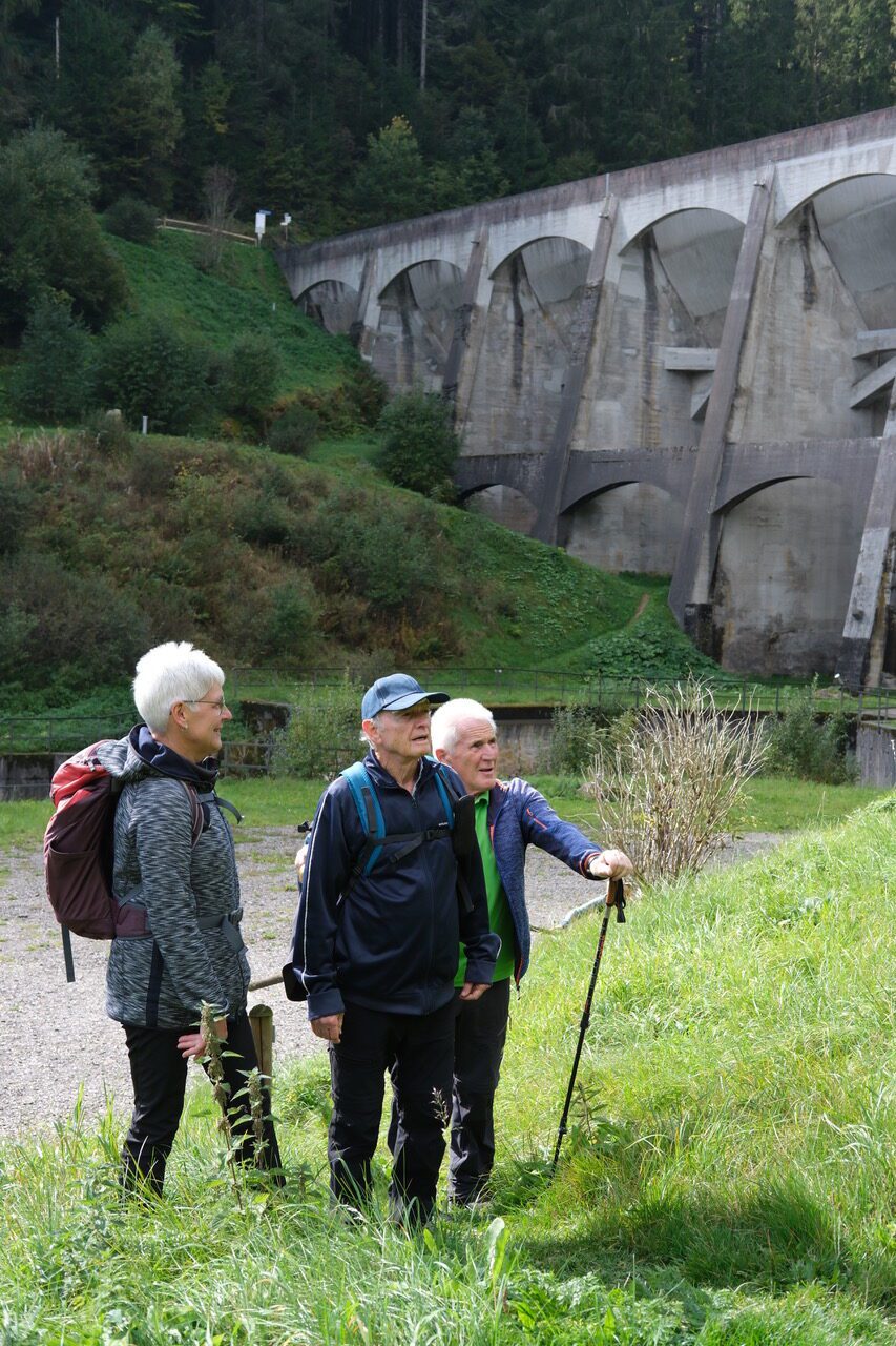Die Mitglieder des Schwarzwaldvereins trafen sich am Sonntag, den 28.September zur Wanderung über Hammereisenbach zur Linachtalsperre. Ausgangspunkt der Wanderung war an der Kohlbrücke an der Auffahrt nach Linach. Entlang des Bregbaches ging es zunächst zur Ruine Neufürstenberg, errichtet im 13. Jahrhundert zur Sicherung des Transportes und der Verarbeitung der Erzvorkommen im Eisenbachtal. Vorbei am Dobelhof ging es dann hinauf zum höchsten Punkt der Tour „auf der Streiche“ mit 1006m Höhe.